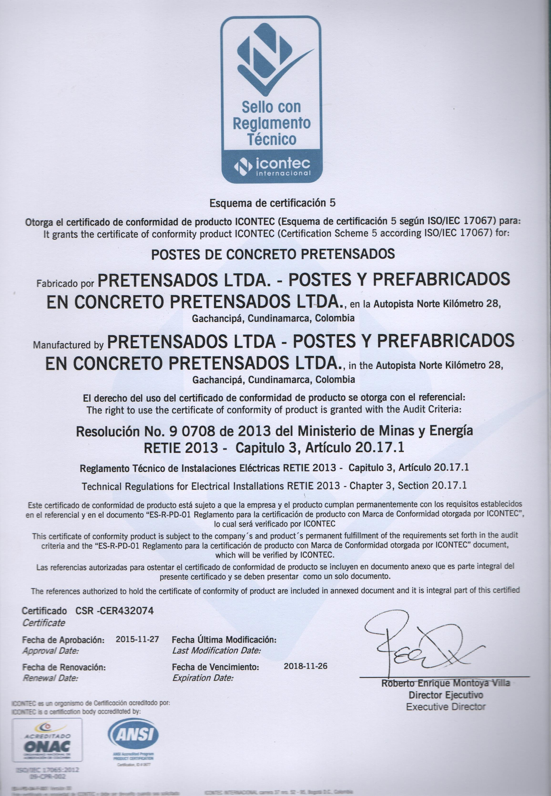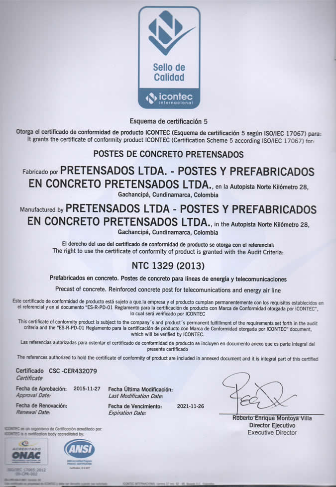 Nuestros Productos en concreto están debidamente certificados por ICONTEC :